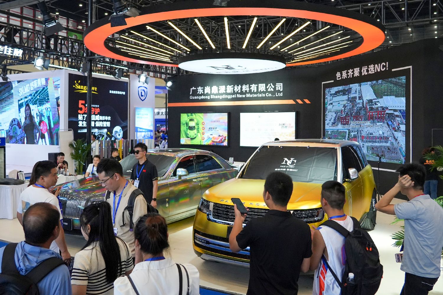 6月26日,第21届郑州国际汽车后市场博览会在河南郑州开幕,吸引3000多家展商参展,展览涵盖内饰、膜类、改装及配套服务等全产业链。图为展出的汽车改色膜吸引客商驻足了解。(图片来源:中新社)
