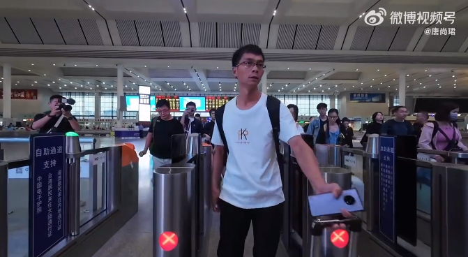 唐尚珺前往学校报道。(图片来源:唐尚珺微博视频截图)