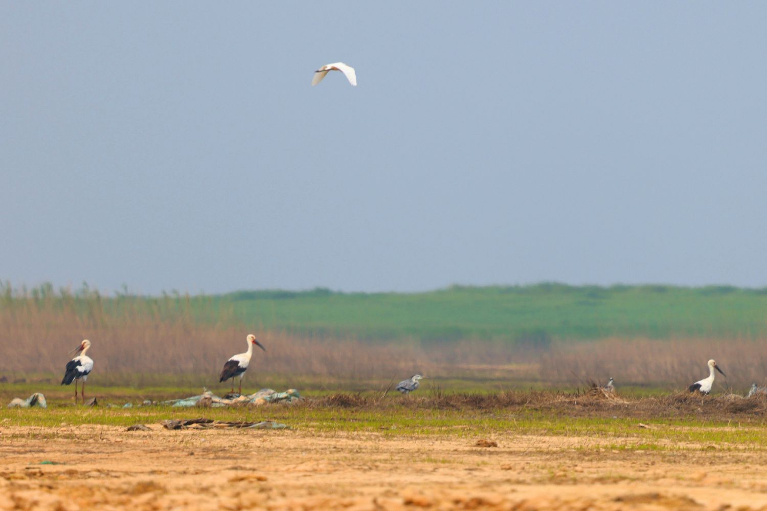 随着鄱阳湖水位持续下降,保护区内能观测到的鸟类种类和数量明显增多。鄱阳湖南矶湿地国家级自然保护区管理局8月份调查记录显示,在保护区内的各个监测点,大白鹭、苍鹭等鸟类频频出现,还记录到了小鸦鹃、白胸翡翠、水雉等国家二级保护野生动物。
