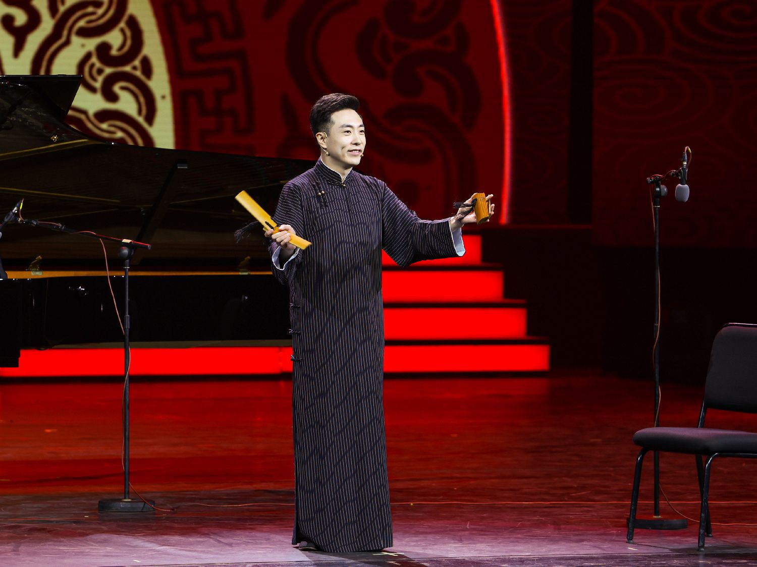 图为中国国家级非物质文化遗产“太原莲花落”传承人王名乐在台上表演。(图片来源:中新社)