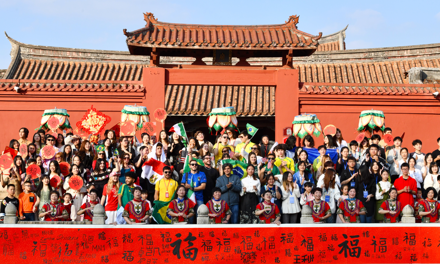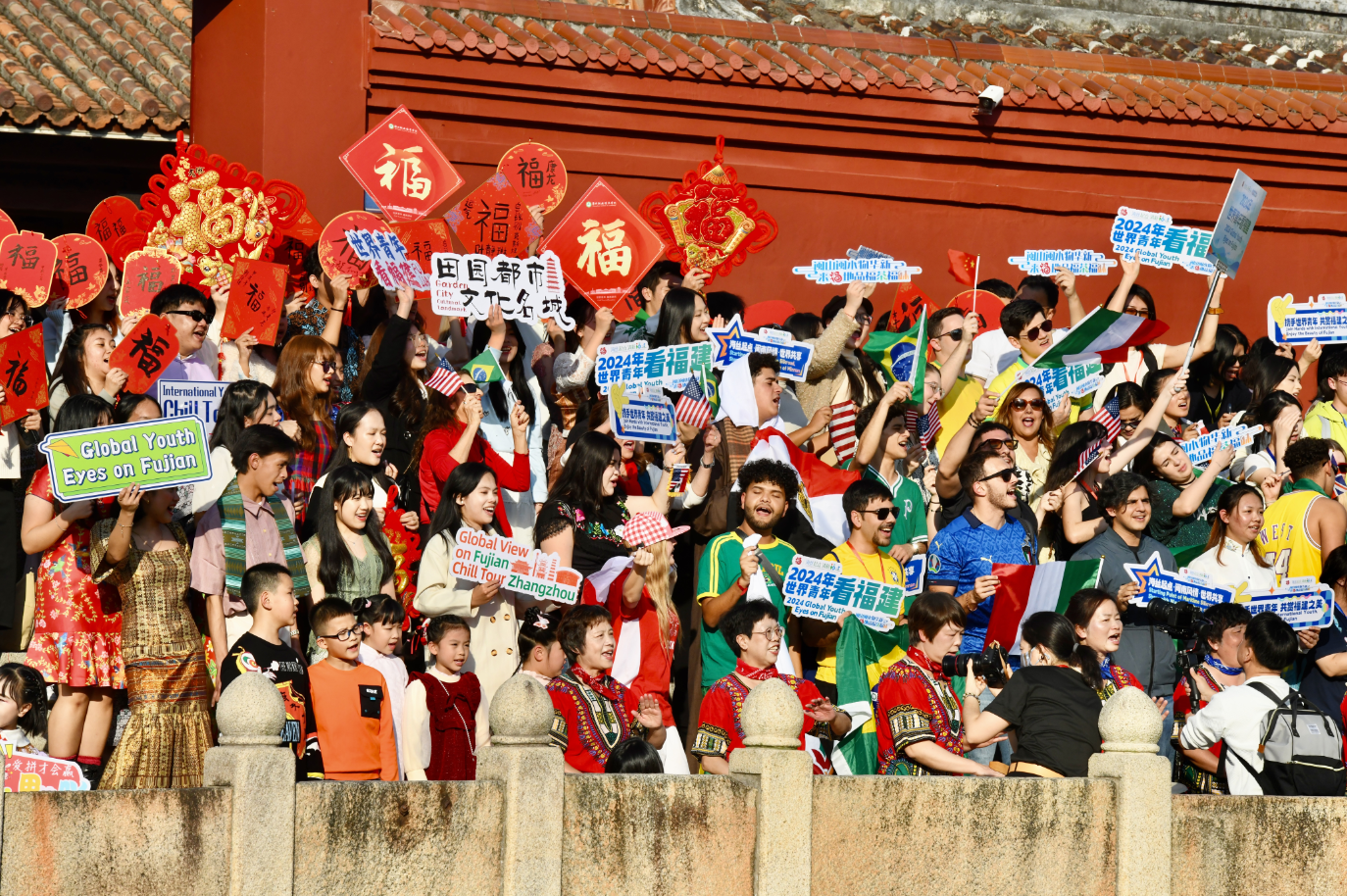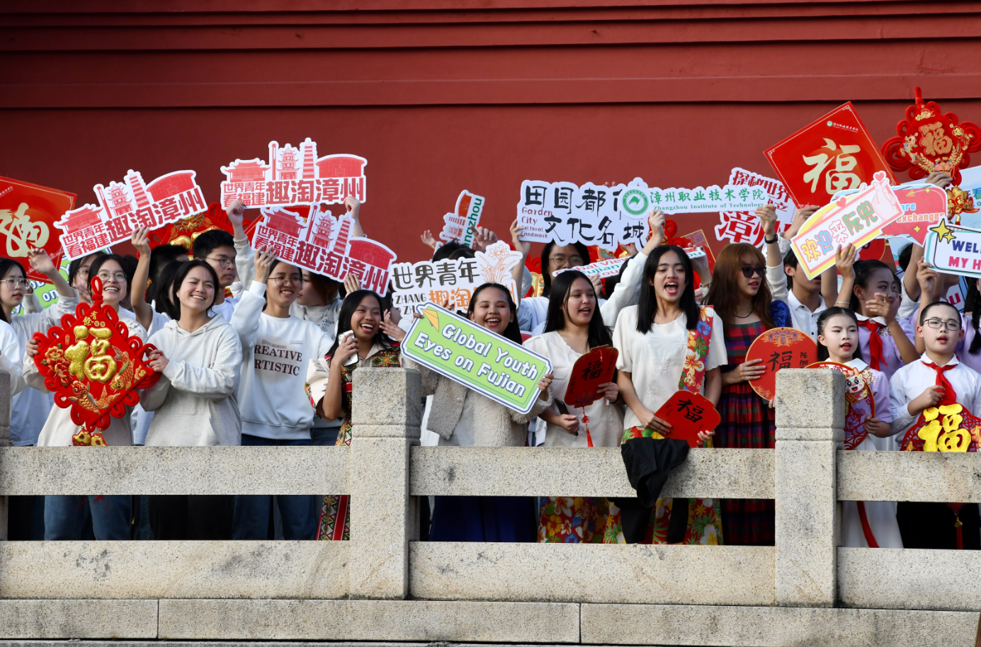 活动现场,中外青年挥舞手中的中国结、“福”字,举着写有“世界青年趣淘漳州”“遇见闽南文化”“感受中国多元文化”“田园都市文化名城”等手牌,表达此行的欢乐和美好。