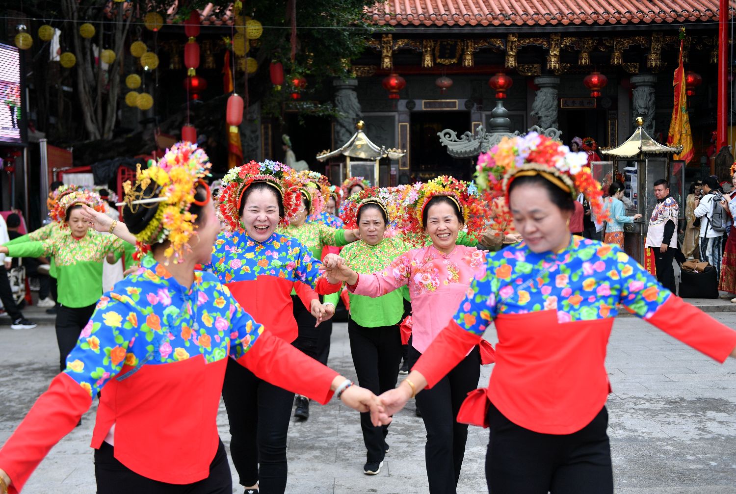 11月21日,福建泉州蟳埔村,蟳埔女进行舞蹈表演。(图片来源:中新社)