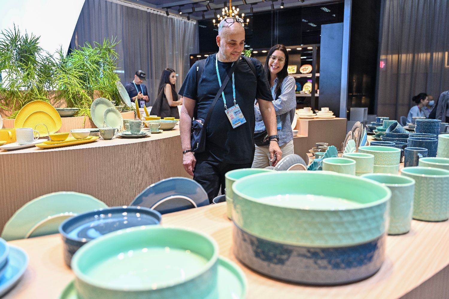 4月23日,第137届中国进出口商品交易会(广交会)第二期在广州开幕,图为采购商在日用陶瓷展区挑选产品。(图片来源:中新社)