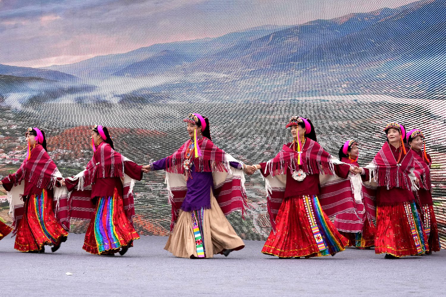 暮色四合,弦子声起,四川金川河畔的雪梨树下,东女嘉绒锅庄队队长央金拉姆与同伴们围成两个大圆圈,跳起有着“天下第一锅庄”之称的马奈锅庄。不远处,手机直播镜头记录下她们由缓转疾的旋转,也让天南海北的网友隔着屏幕窥见千年锅庄的时代节拍。