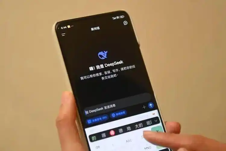 用户在DeepSeek手机客户端上提问。(图片来源:新华社)
