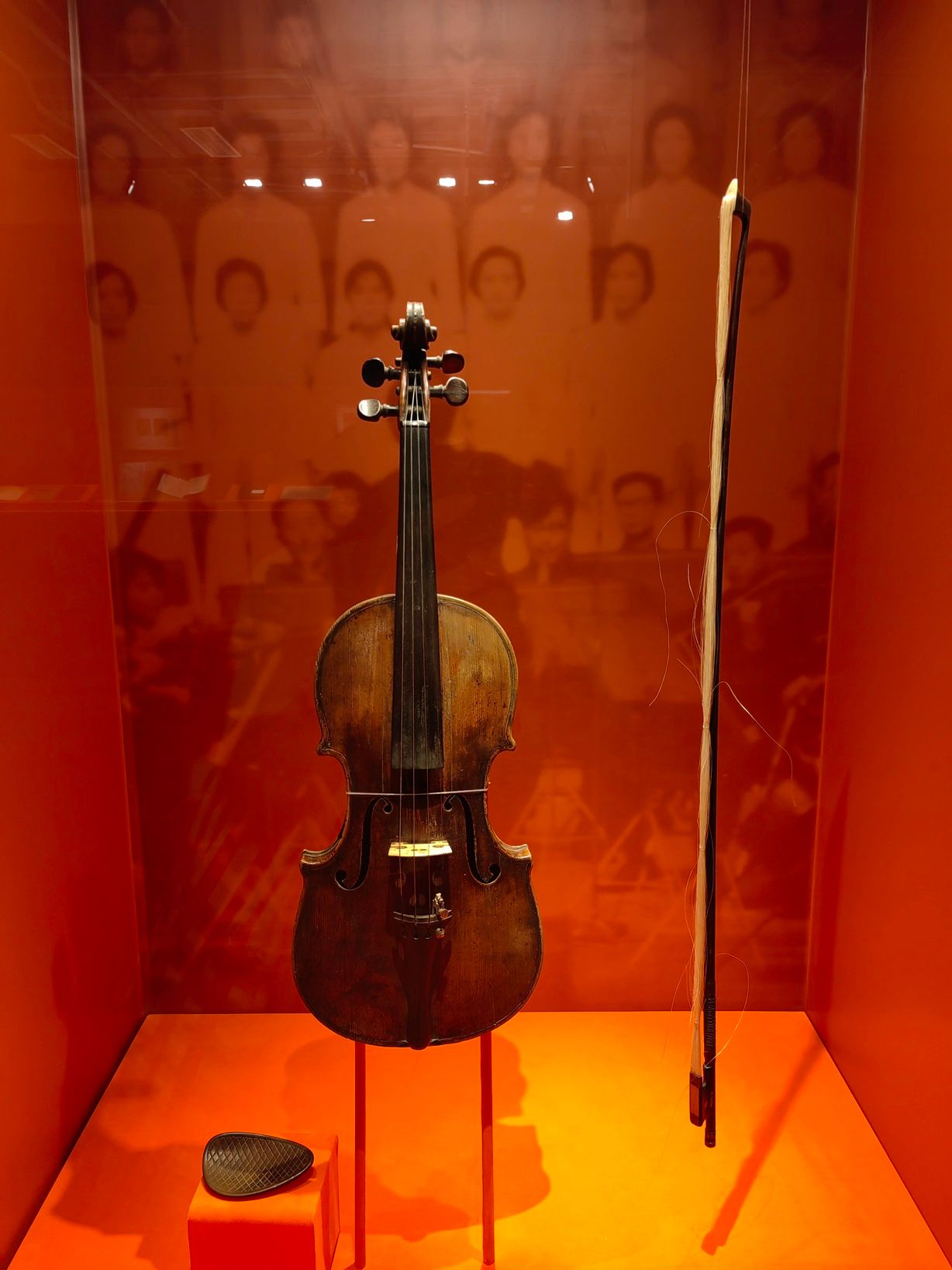 图为现场展出冼星海用过的小提琴。(图片来源:中新社)