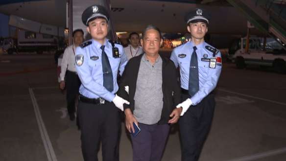 “百名红通人员”梁锦文回中国投案。(图片来源:大陆央视新闻客户端)
