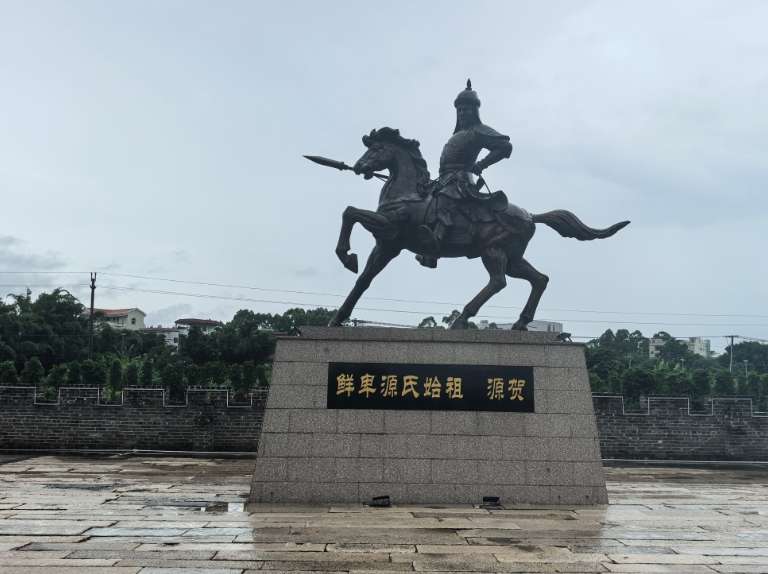 图为霄南村的鲜卑源氏始祖源贺雕像。(图片来源:中新社)