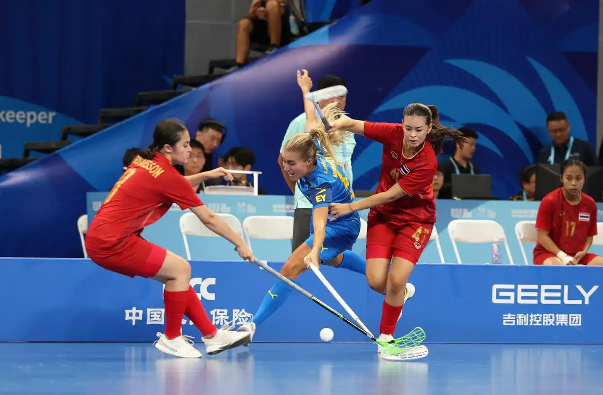 中新社报道,瑞典队曾斩获11枚世锦赛金牌,也是此次世运会夺冠热门,首场比赛她们轻松获胜。“比赛、观众和场馆环境都让我感觉太棒了!尤其观众们非常热情,每当我们发起进攻,他们都会送上欢呼,比赛全程我都能听到加油声和掌声。”瑞典队选手玛雅·维斯特伦姆(Maja Vistrom)赛后表示,在享受比赛过程的同时,她也期待能有机会去逛逛成都、看看大熊猫。