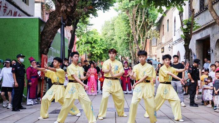 中新网报道,当天,永春暑期文旅消费季系列活动之“暑期清凉游”走进福州。在永德会馆,武术演员身着传统服饰,演绎永春白鹤拳经典招式“鹤舞永春”:白鹤展翅似欲凌云霄,白鹤献爪尽显迅猛凌厉,微风拔树暗藏千钧力道。一招一式刚柔相济,将白鹤拳灵活多变的风格特质展现得淋漓尽致。