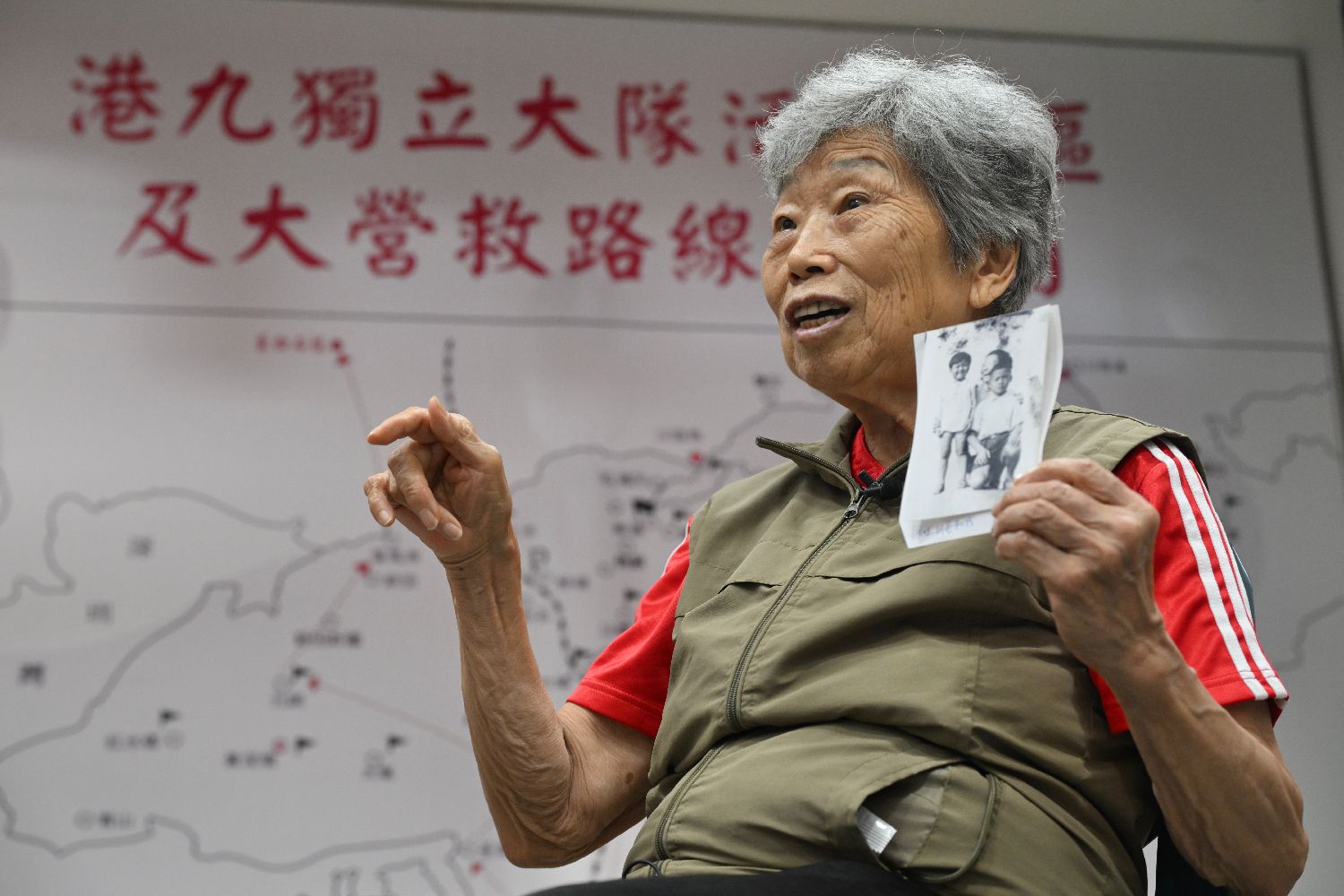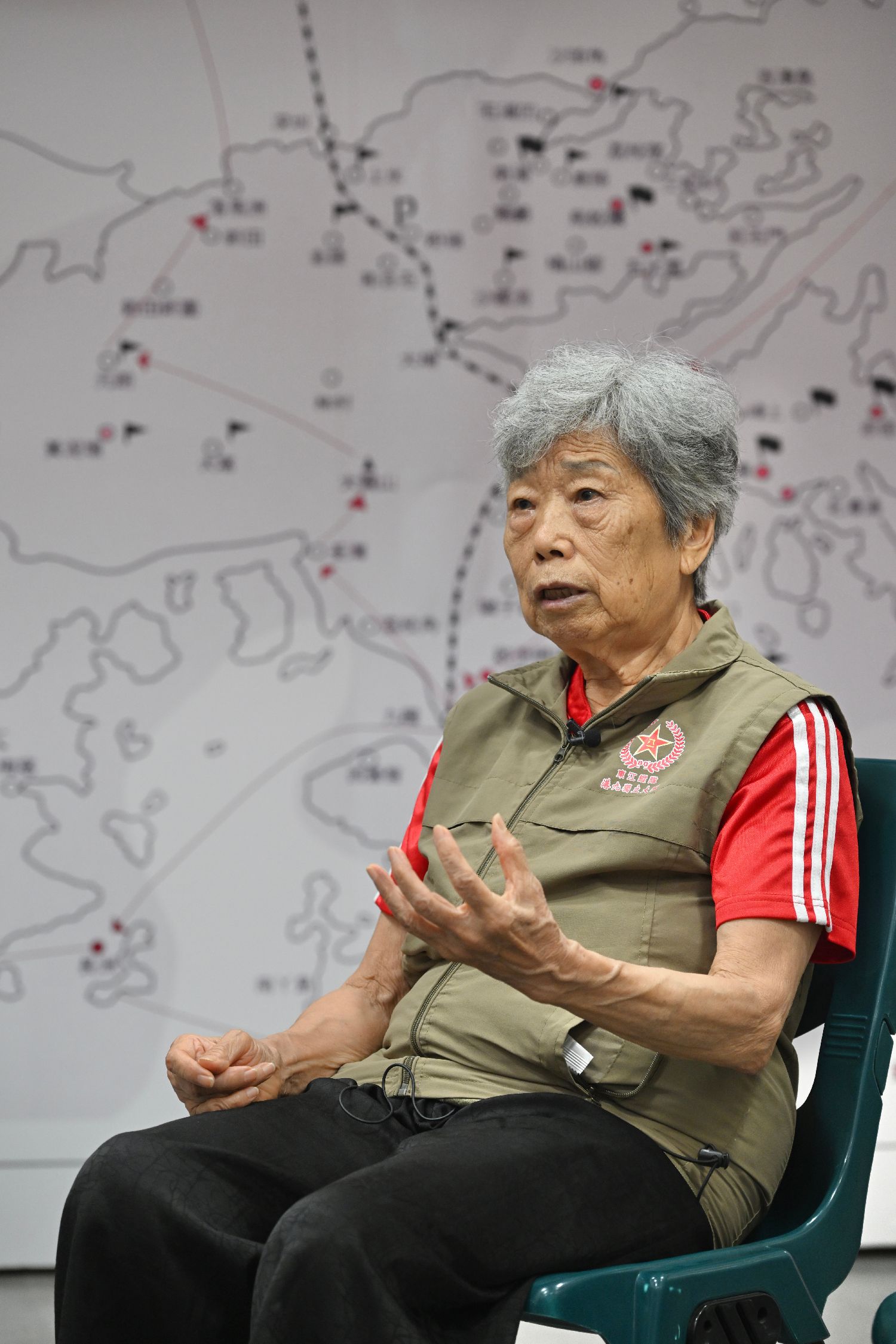 7月31日,原东江纵队港九独立大队老游击战士联谊会会长林珍接受采访。(图片来源:中新社)