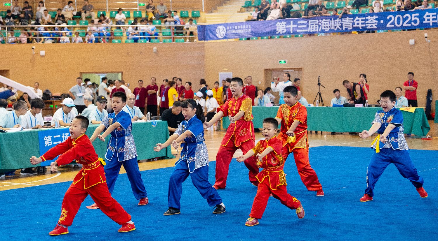 8月21日,第十三届海峡青年荟·2025年闽台甘国宝武术文化周在宁德市屏南县开幕。图为武术比赛现场。(图片来源:中新社)