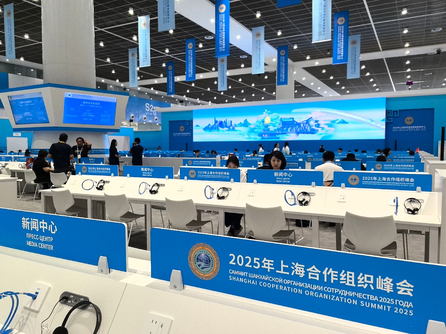 8月28日8时起,2025年上海合作组织峰会新闻中心正式开放。(图片来源:中新社)