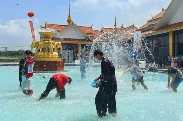 泼水狂欢派对将活动推向高潮。在音乐的节奏中,各族村民与游客拿起水盆涌入泼水区,进行泼水“大战”。身穿傣族服饰的游客吴斓说,洋林村新建的泼水广场,非常具有傣族风情。“傣族文化中,泼水代表传递祝福,希望把吉祥带给每个人。”