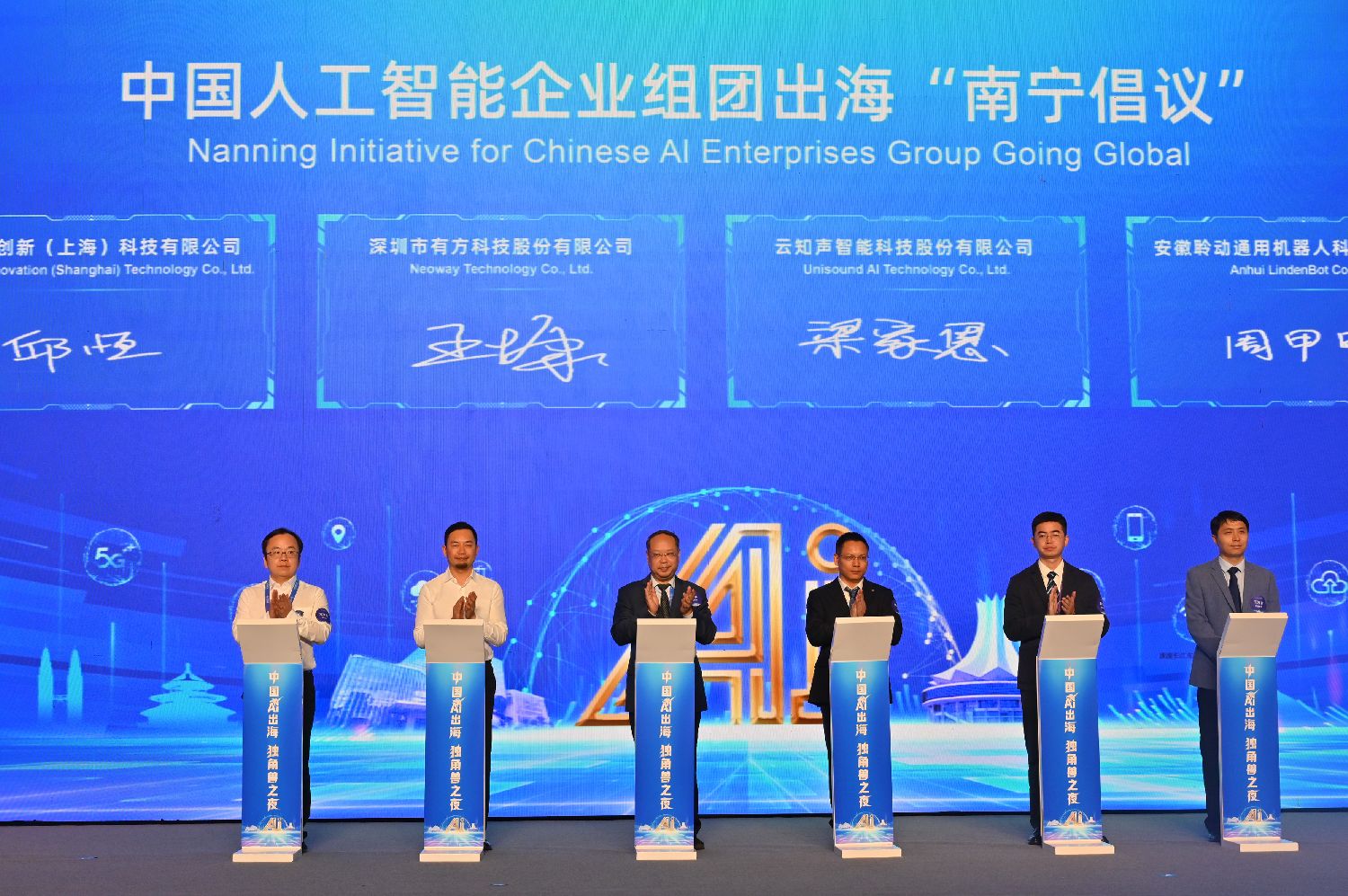 图为《中国人工智能企业组团出海南宁倡议》发布现场。(图片来源:中新社)