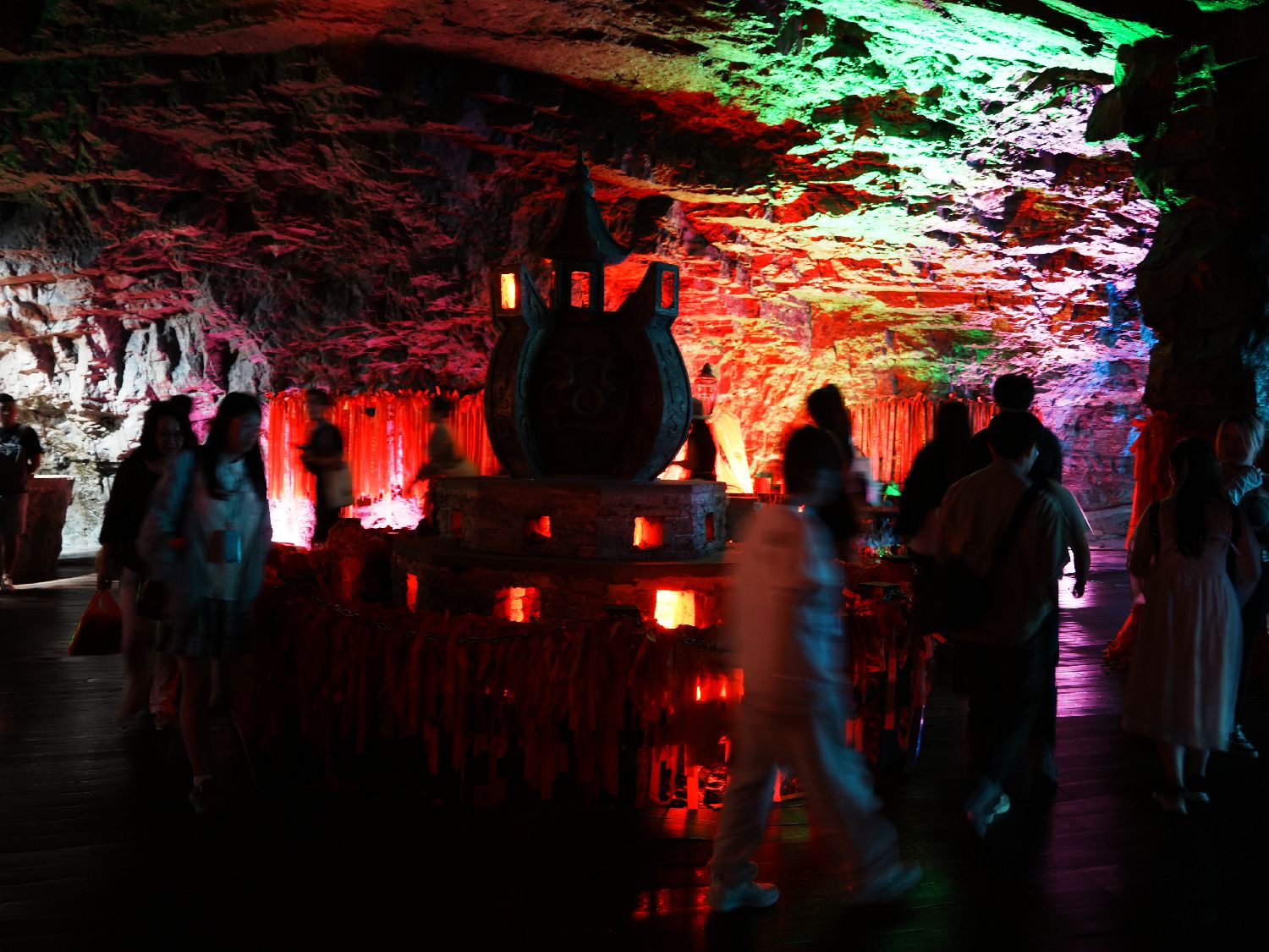 2025年6月,游客在贵州省铜仁市万山区朱砂古镇的矿洞内参观游玩。(图片来源:中新社)