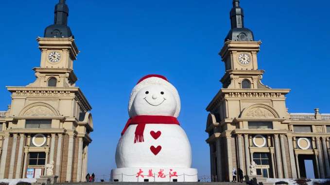 大陆央视新闻客户端报道,今年的“大雪人”身高19米、长14米、宽11米,比往年高了1米,用雪量增加了1200立方米,总用雪量超3000立方米,达到历年之最,让大雪人体态看起来更加圆润饱满。
