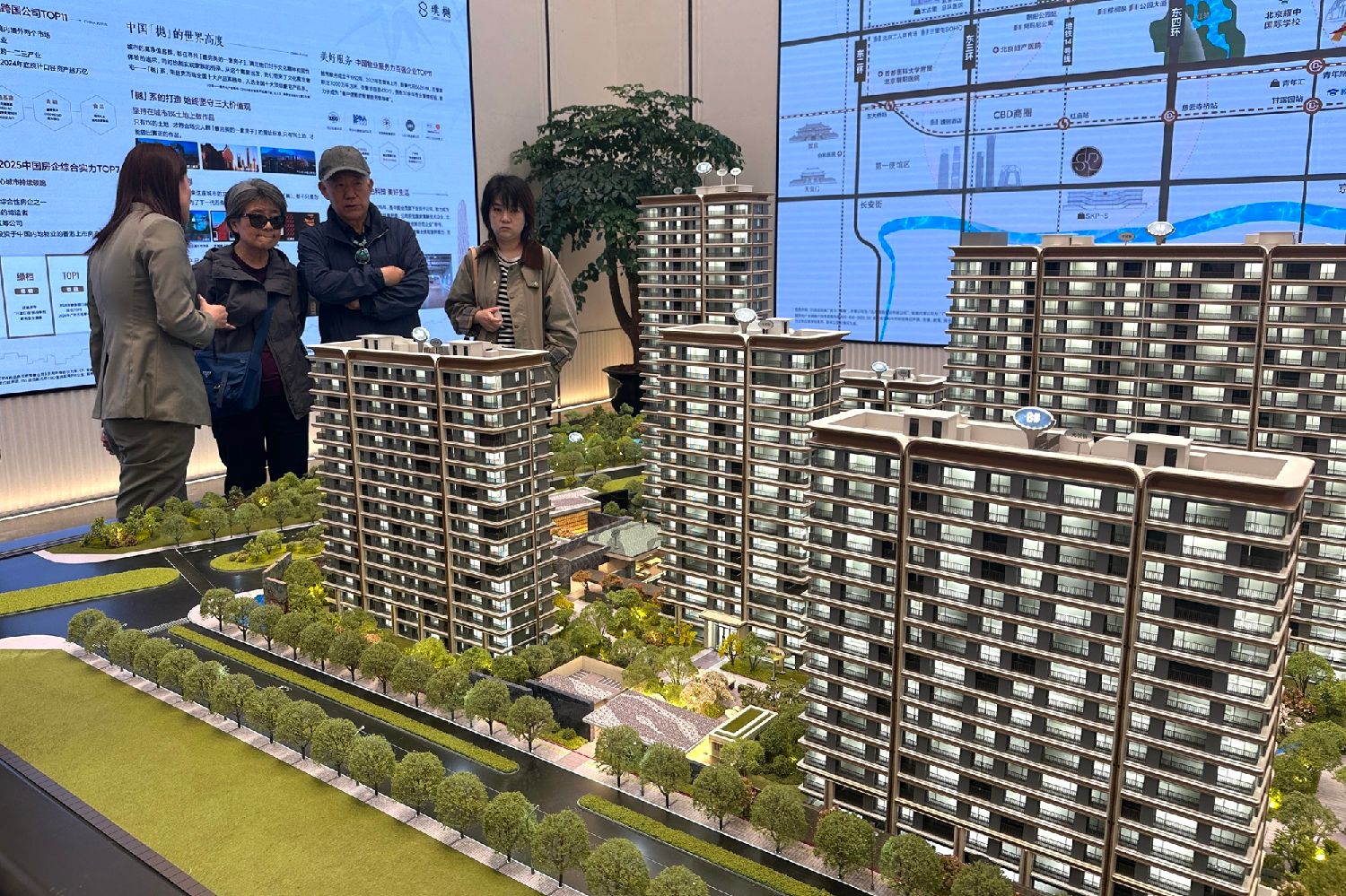 民众在北京一售楼处了解楼盘信息。(图片来源:中新社)