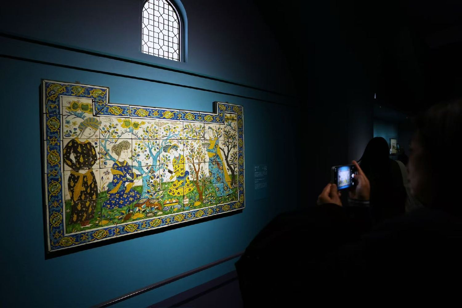12月12日,展览“图案的奇迹:卢浮宫印度、伊朗与奥斯曼的艺术杰作”在上海浦东美术馆举办媒体预览活动。图为赛诗会饰板。(图片来源:中新社)